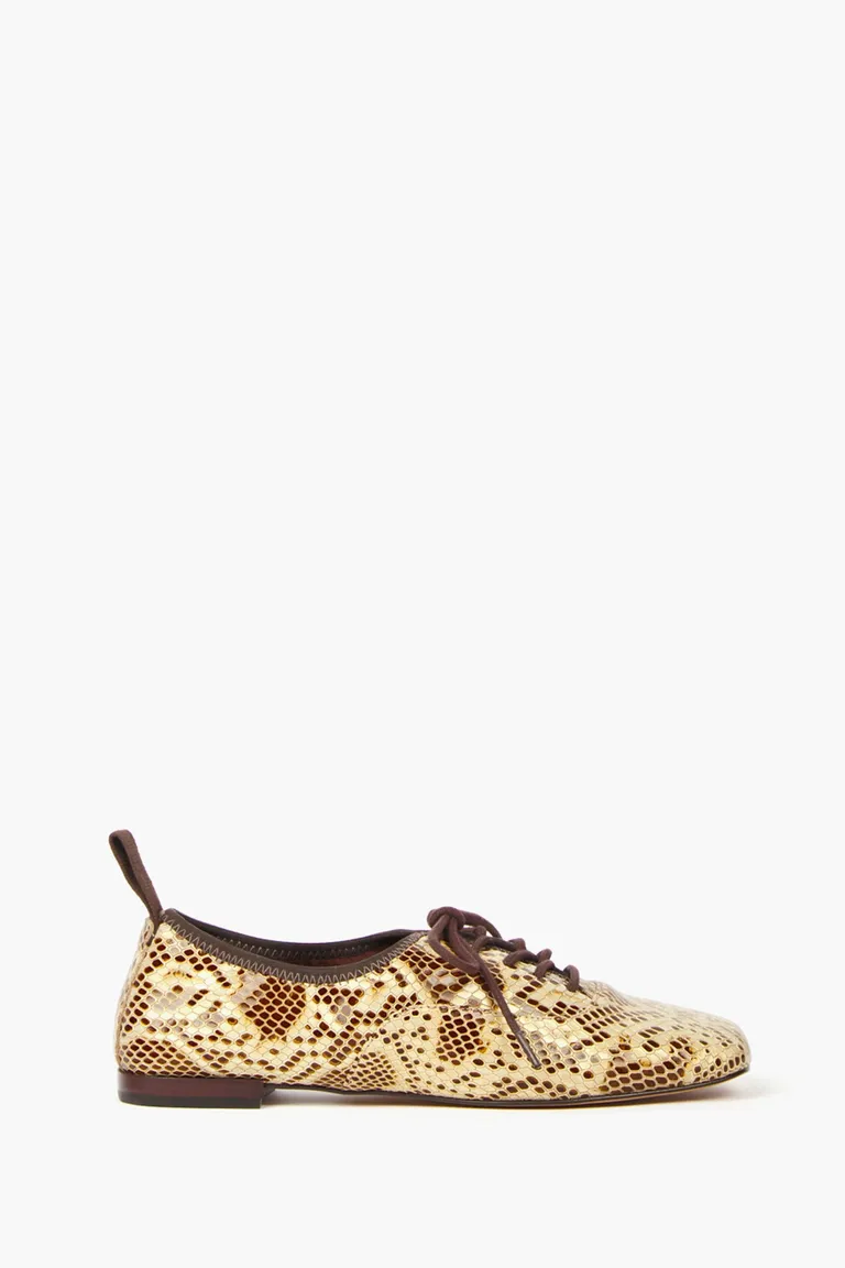 Abotinado ultra flat con diseño de punta cuadrada y sistema de ajuste mediante cordones. Presenta una textura definida en toda su superficie y una suela a contratono que aporta contraste al diseño. Ideal para completar looks diarios con un estilo clásico y distinguido.
