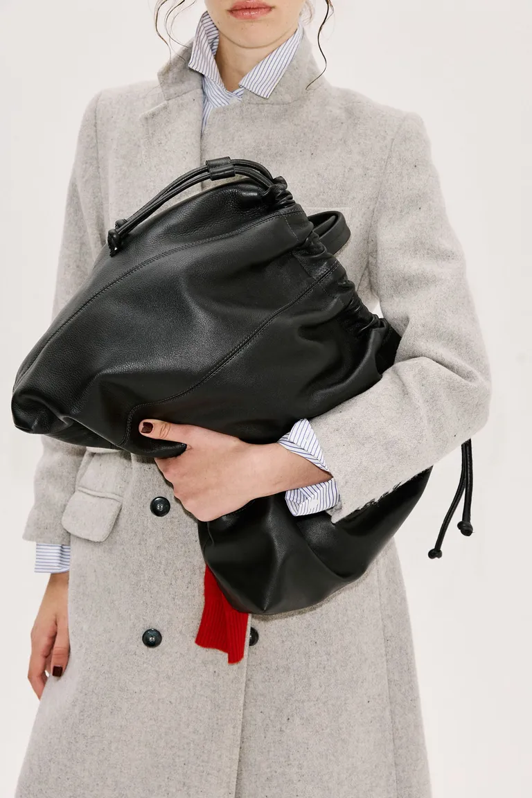 Bolso de gran tamaño ideal para el uso diario. Presenta un diseño versátil con un sistema de cierre práctico mediante correa de ajuste, permitiendo llevar tus objetos personales con comodidad. Su formato espacioso y funcional lo convierte en el complemento perfecto para organizar tus elementos cotidianos con estilo y practicidad.