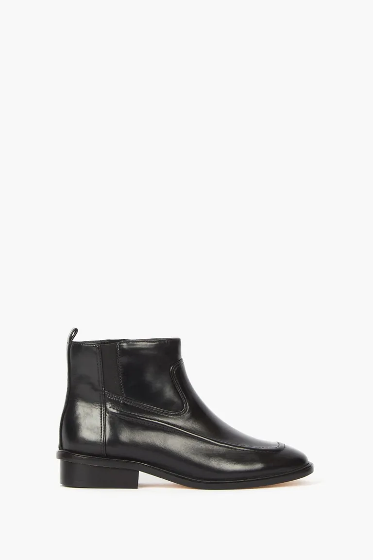 Botineta de caña baja con cierre lateral, elástico y costuras decorativas en capellada de Mishka