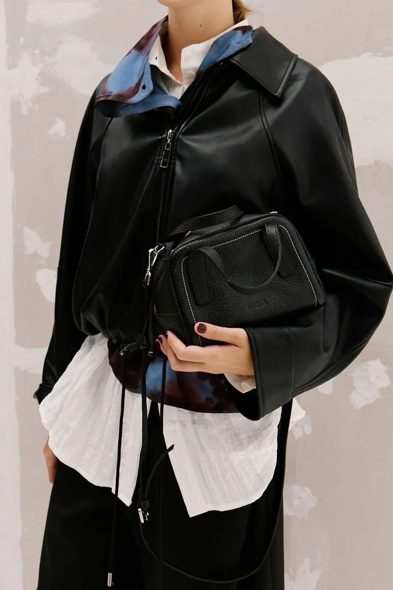 Cartera de tamaño compacto con diseño versátil. Cuenta con manijas cortas para llevar en la mano y una correa larga desmontable que permite usarla como bandolera o al hombro. Su interior está forrado e incluye un compartimento para organizar objetos pequeños. Un accesorio funcional y práctico para el uso diario.
