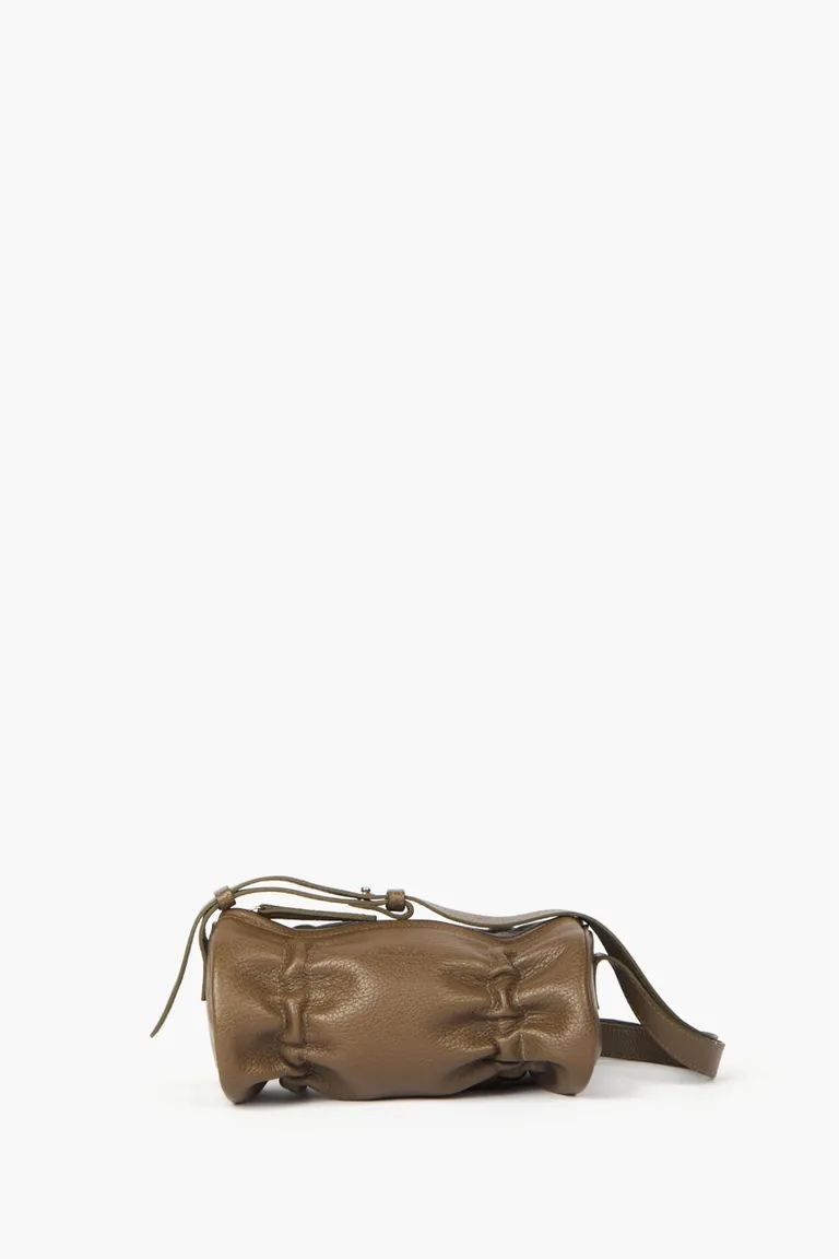 Cartera pequeña de formato cilíndrico con detalles de fruncido en el frente y parte trasera. Este diseño compacto incluye correa regulable que permite su uso al hombro o cruzada. Cuenta con sistema de cierre para mayor seguridad y un bolsillo interior para organizar objetos personales. Un accesorio práctico y liviano, ideal para complementar outfits cotidianos con un toque de estilo distintivo.