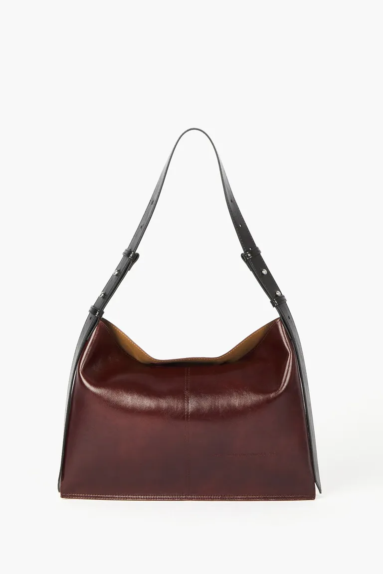 Cartera de hombro de diseño estructurado y minimalista. Presenta una terminación con brillo y efecto texturizado, ideal para complementar outfits urbanos o formales. Cuenta con una correa ajustable y cierre mediante broche imán para mayor seguridad. Su interior amplio incluye un bolsillo organizador, ofreciendo practicidad y estilo en un accesorio versátil para el uso diario.