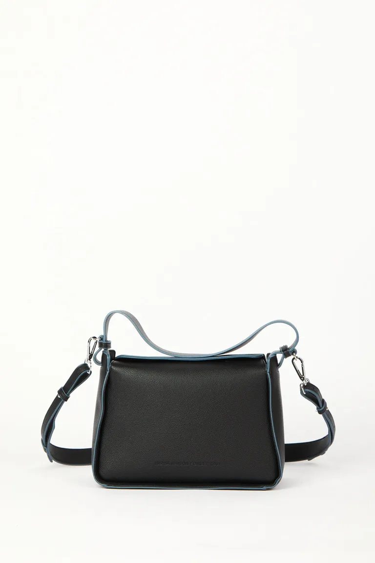 Cartera de tamaño mediano con diseño versátil. Cuenta con una manija corta fija para llevar al hombro o en la mano, y una correa larga desmontable y regulable para usar como bandolera. Su interior se encuentra forrado y dispone de bolsillos internos para organizar objetos personales. Un accesorio funcional con detalles de contraste, pensado para el uso cotidiano.