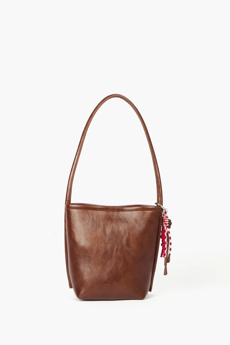 Cartera pequeña de diseño minimalista con manija corta. Incluye un práctico bolsillo interior desmontable y un charm decorativo extraíble en la manija para personalizar el accesorio. Su capacidad resulta ideal para llevar los elementos esenciales del día a día, ofreciendo un estilo funcional y versátil para diversas ocasiones.