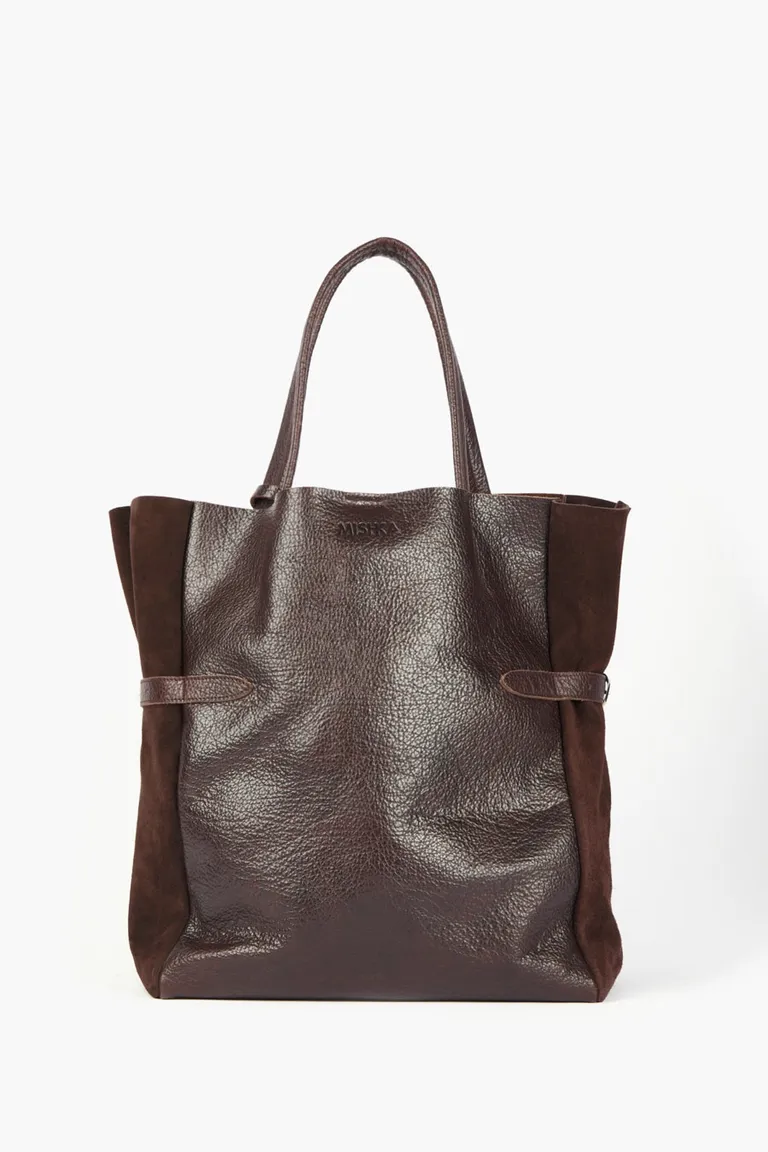 Bolso tote de diseño desestructurado con manijas cómodas para uso diario. Presenta detalles laterales combinados y un cierre superior con broche imán. Incluye en su interior un práctico bolsillo desmontable con cierre metálico para organizar objetos personales. Un accesorio versátil, funcional y esencial para complementar looks urbanos con un estilo moderno y atemporal.