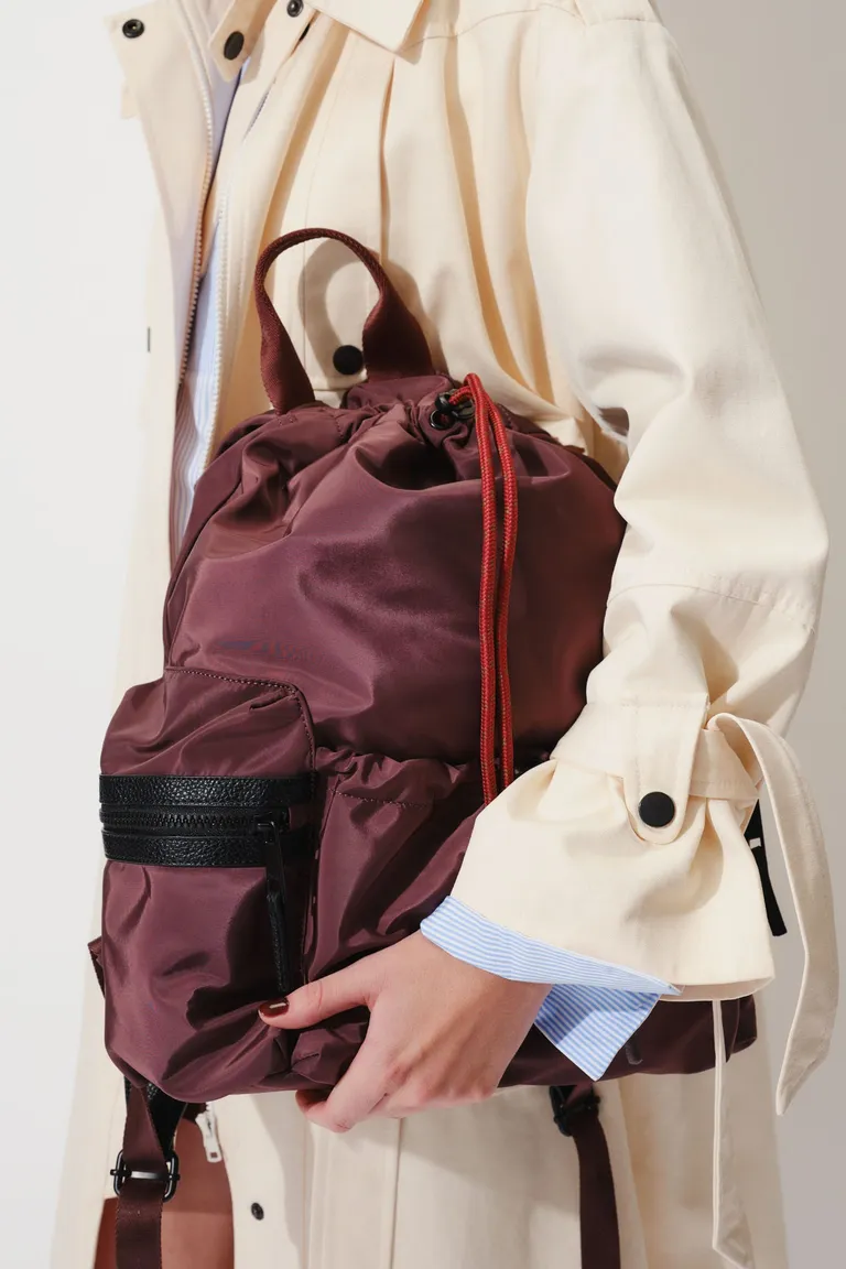 Mochila versátil con cordón ajustable y diseño funcional. Cuenta con un bolsillo frontal con cierre, compartimento interior forrado, bolsillo organizador interno y espacio diseñado para transportar dispositivos electrónicos. Las correas ajustables garantizan un calce cómodo, ofreciendo una opción práctica y liviana para el uso diario o traslados urbanos.
