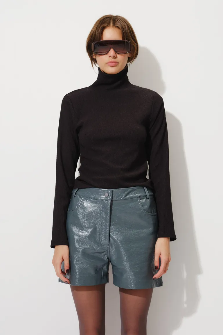 Remera de mangas largas con cuello alto, diseñada con una silueta entallada y versátil. Esta prenda presenta una estética minimalista y sofisticada, ideal para combinar en diversos outfits tanto de día como de noche. Un básico esencial que aporta comodidad y estilo al guardarropa femenino.