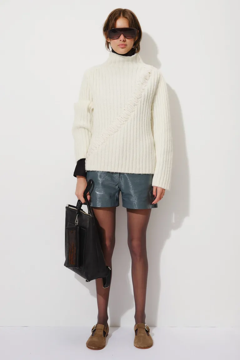 Short de diseño clásico y funcional, elaborado en simil cuero con textura. Presenta bolsillos laterales en el frente y traseros para mayor practicidad. Posee una cintura estructurada con un sistema de cierre mediante broche a presión al tono, ofreciendo un calce cómodo y versátil para diversas ocasiones.