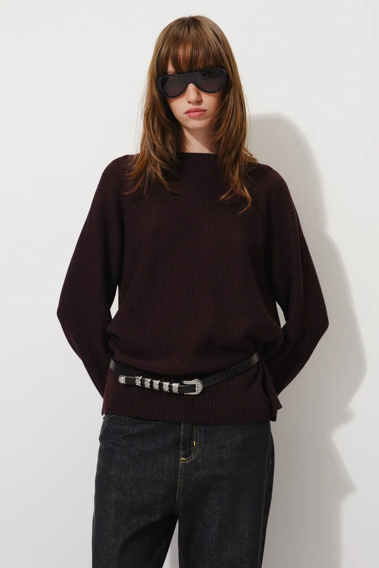 Sweater tejido de cuello base con mangas largas y diseño acanalado de Mishka