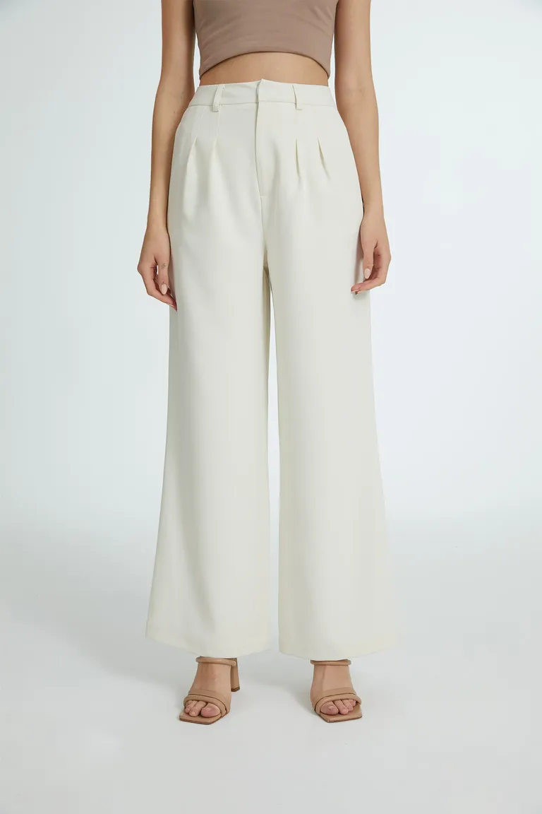 Pantalón sastrero de corte recto y tiro alto. Presenta diseño con pinzas frontales, cierre frontal con botón oculto y bolsillos laterales. Ideal para lograr un look sofisticado y versátil, brindando comodidad y un calce impecable en cualquier ocasión.