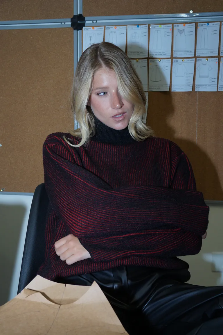 Sweater tejido con cuello alto y terminaciones en rib de Naíma