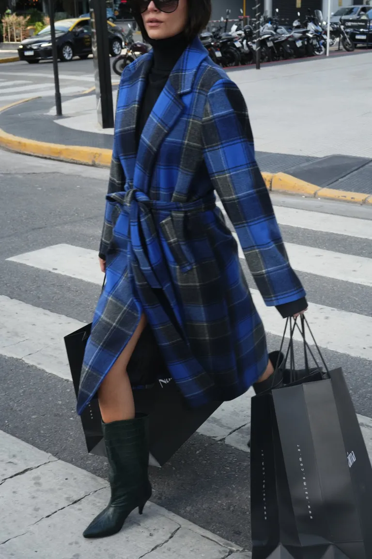 Tapado largo con diseño de cuadros, solapas clásicas y cinturón incorporado para ajustar en la cintura. Una prenda versátil ideal para completar looks urbanos de temporada, aportando calidez y estilo sin esfuerzo.