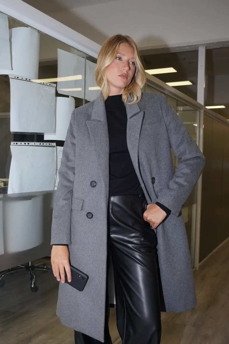 Tapado sastrero de largo midi con solapas clásicas y cierre frontal mediante doble botonadura. Presenta un diseño versátil y estructurado, ideal para completar outfits urbanos y formales con una capa exterior elegante y atemporal. Su corte impecable y terminaciones cuidadas lo convierten en una pieza esencial para los días de temperaturas bajas.