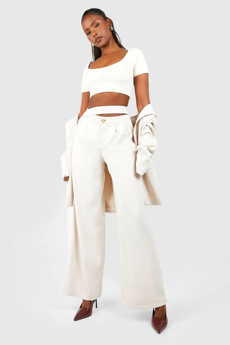 Estos pantalones palazzo de línea recta y pierna ancha son el complemento perfecto para un look elegante y sofisticado. Su diseño con detalle de pinzas en el frente y tejido ligero y fluido les brindan un movimiento y comodidad excepcionales. Úsalos con una blusa de seda y sandalias de tacón para crear un estilo de noche impactante y chic.
