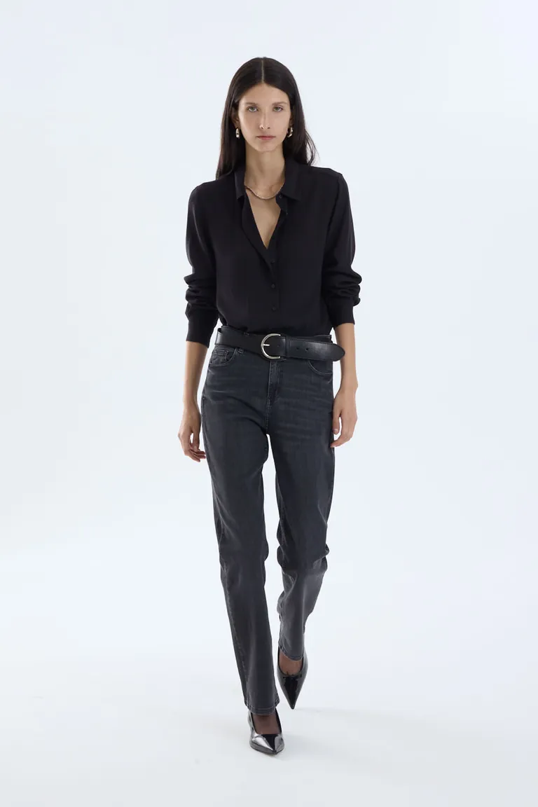 Camisa de calce clásico con cuello a la base y mangas largas. Cuenta con cartera a la vista y un diseño funcional de fácil planchado, ideal para completar tus outfits de todos los días con un toque elegante y sobrio.