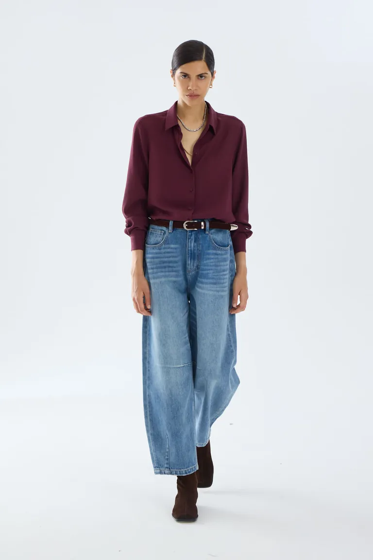 Camisa de mujer con cuello clásico y mangas largas. Presenta una silueta versátil con cierre frontal mediante botones a la vista. Una prenda ideal para elevar un conjunto diario, ofreciendo un ajuste cómodo y un estilo atemporal para diversas ocasiones.
