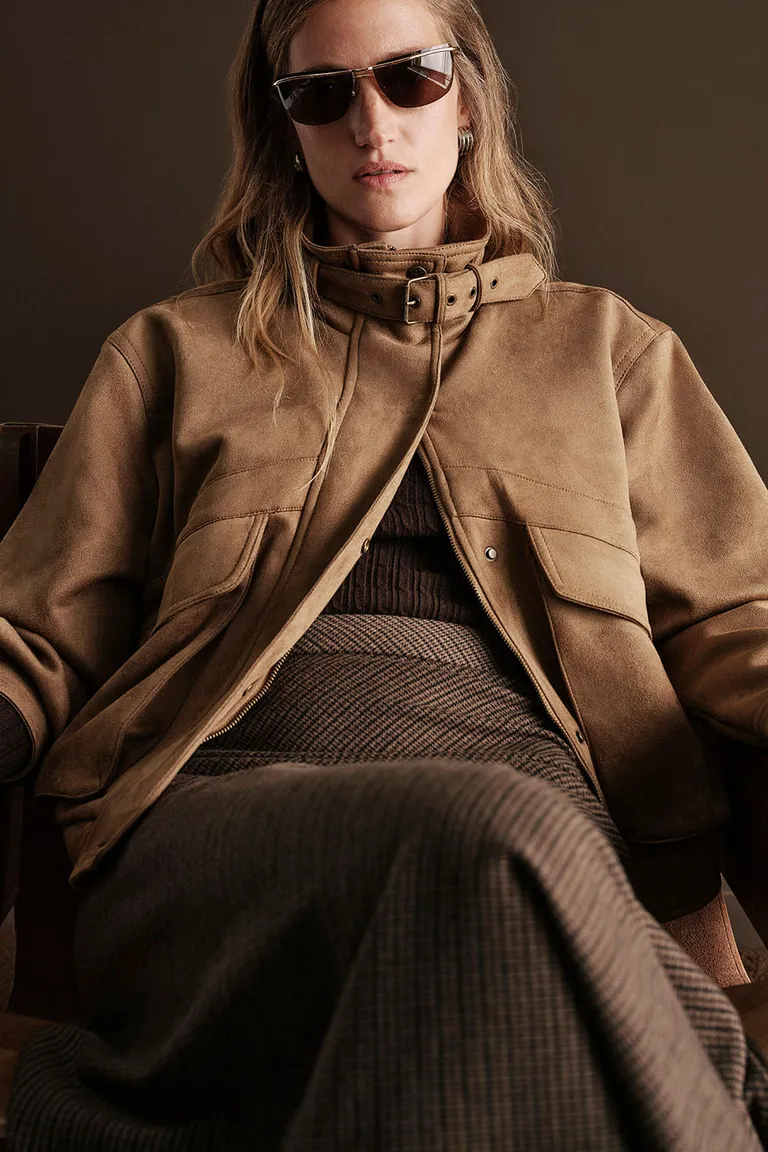 Campera de calce holgado con cuello alto y traba de ajuste. Cuenta con bolsillos plaque con tapa de doble ingreso, cierre frontal central y broches escondidos. Ideal para completar outfits casuales con un diseño funcional y estructurado, ofreciendo abrigo y estilo en una prenda versátil para el día a día.