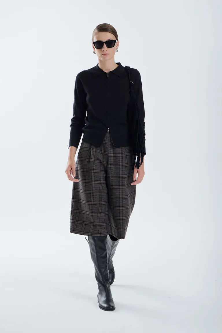 Campera tejida de diseño clásico con cierre metálico frontal de doble carro. Presenta un ajuste cómodo de manga larga con terminación a la cadera, ideal para combinar en outfits urbanos. Una prenda versátil y funcional para el guardarropa femenino.