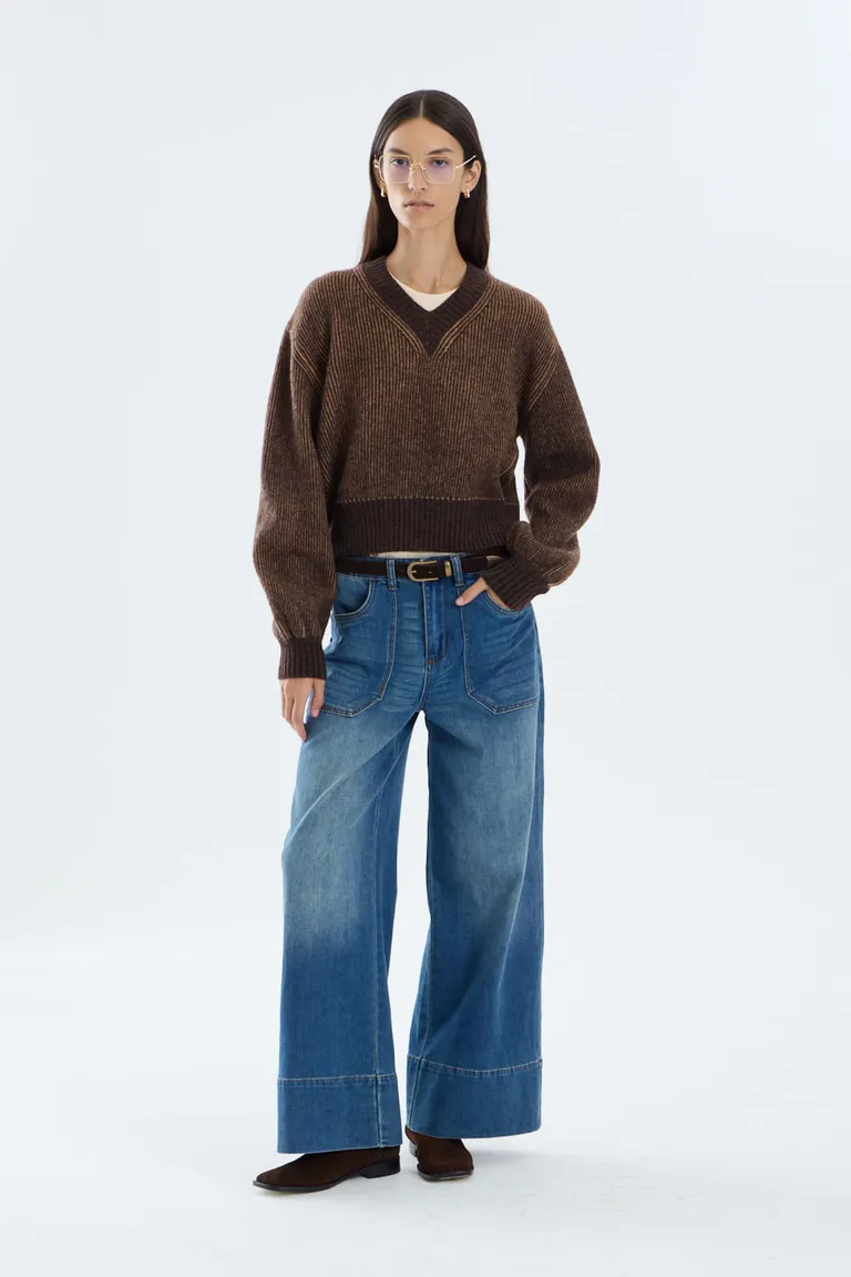 Jean de corte wide leg con diseño de pierna ancha, tiro medio y ruedo amplio. Presenta bolsillos plaque en el delantero, ofreciendo un calce cómodo y versátil para diversos outfits. Una prenda esencial con detalles cuidados y estructura definida, ideal para combinar en looks casuales o urbanos. Su diseño permite una caída relajada y un estilo moderno, manteniéndose como un básico funcional para el día a día.
