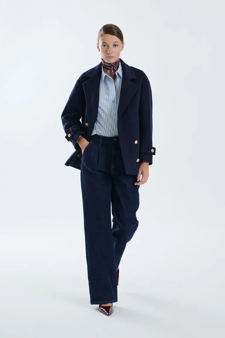 Pantalon de corte recto con pinzas frontales que brindan un toque de sastrería al diseño. Presenta un lavado uniforme con detalles en contratono en bolsillos, cintura interna y presillas, logrando un equilibrio entre estilo casual y formal para el uso diario. Posee una silueta favorecedora y cómoda con bolsillos funcionales.
