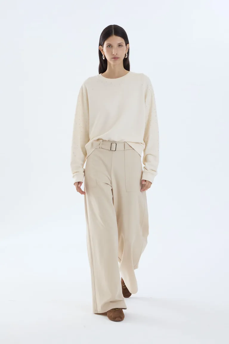 Pantalón de calce holgado con diseño de piernas amplias y tiro medio, ideal para combinar con prendas superiores básicas. Este modelo presenta una cintura con ajuste mediante cinto incorporado, aportando una silueta relajada y cómoda para el uso diario en entornos urbanos.