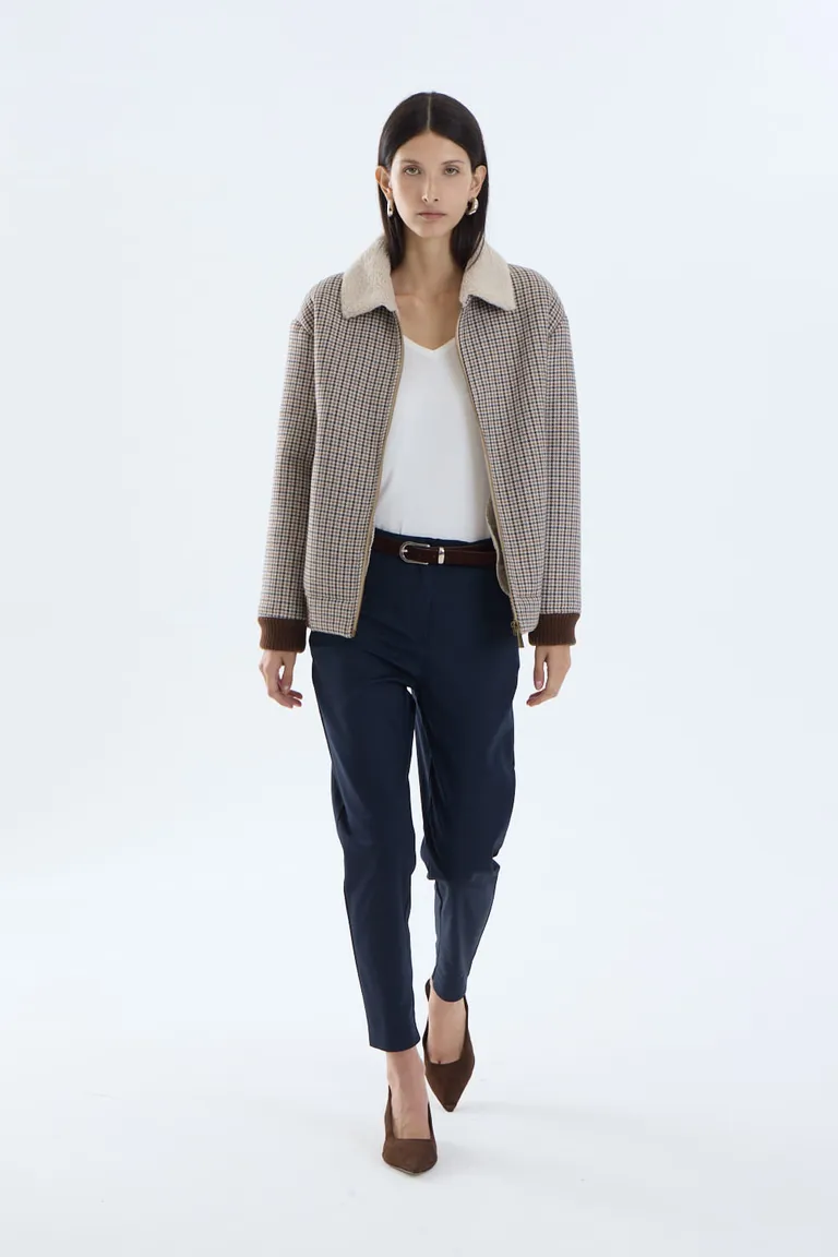 Pantalón sastrero de corte slim, diseñado con pinzas frontales y un detalle característico en la cintura trasera. Esta prenda ofrece un calce preciso y funcional, ideal para incorporar en looks formales o de oficina con total comodidad durante toda la jornada.