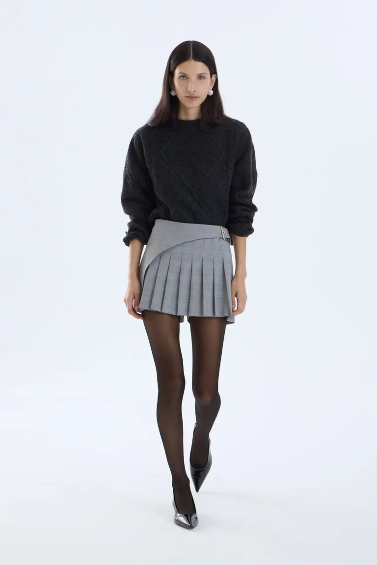 Pollera pantalón con diseño de tablas y detalle de faja con hebilla metálica. Una prenda de estilo sastrero ideal para integrar en outfits urbanos y versátiles. Su diseño combina la estética de una falda con la comodidad de un short, ofreciendo una opción funcional y moderna para el día a día.
