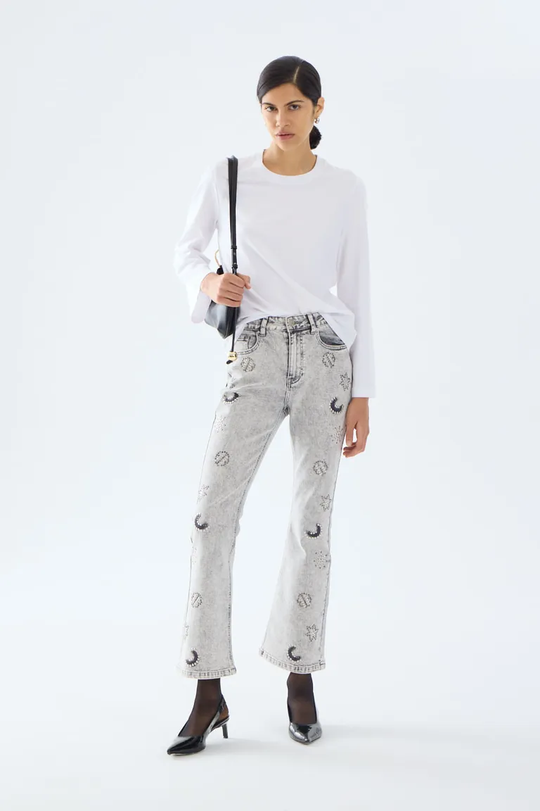 Remera de corte recto con mangas largas, diseñada con una silueta clásica de cuello redondo y acabado acampanado sutil en los puños. Esta prenda básica y versátil se adapta a diversos outfits diarios, ofreciendo un ajuste cómodo y moderno que completa cualquier look casual.