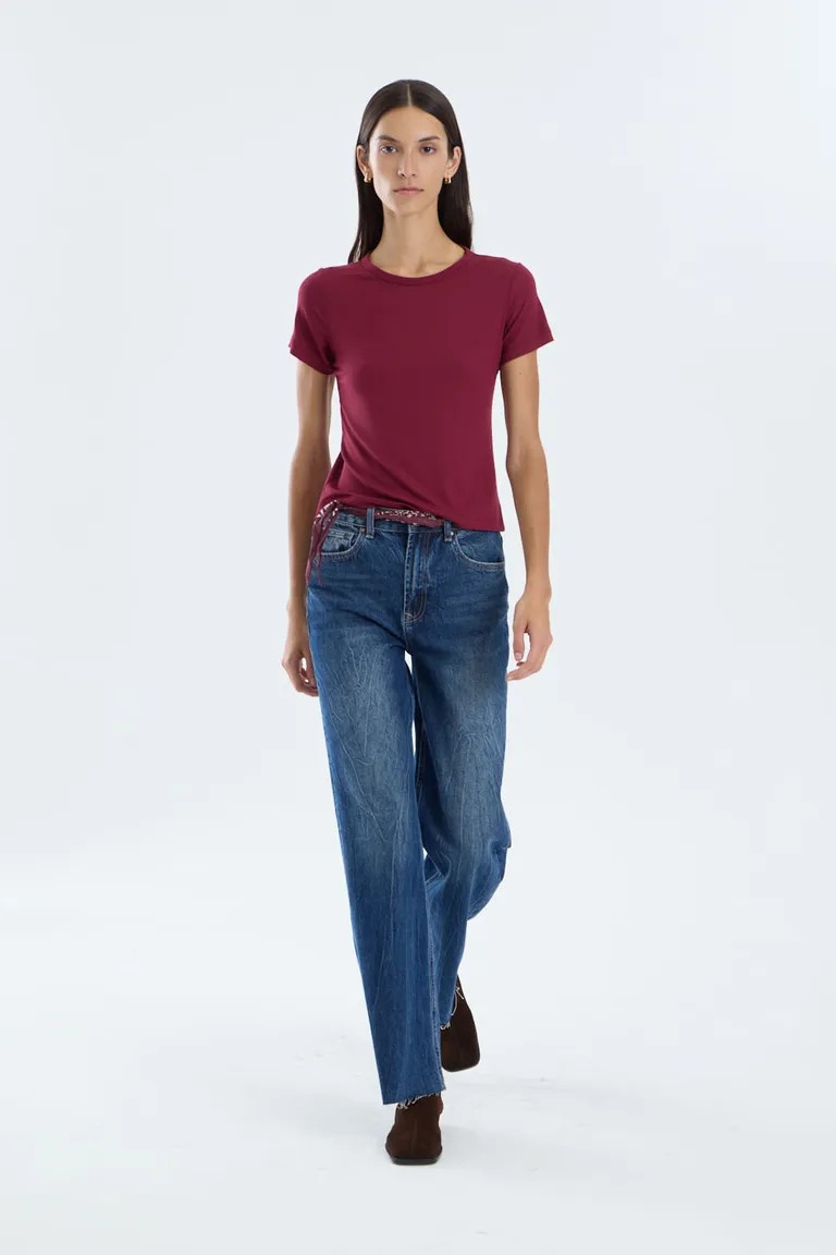 Remera de corte regular con mangas cortas y escote redondo. Una prenda básica y esencial, diseñada para brindar comodidad en el uso diario. Presenta una silueta clásica que permite múltiples combinaciones en todo tipo de looks casuales y urbanos.