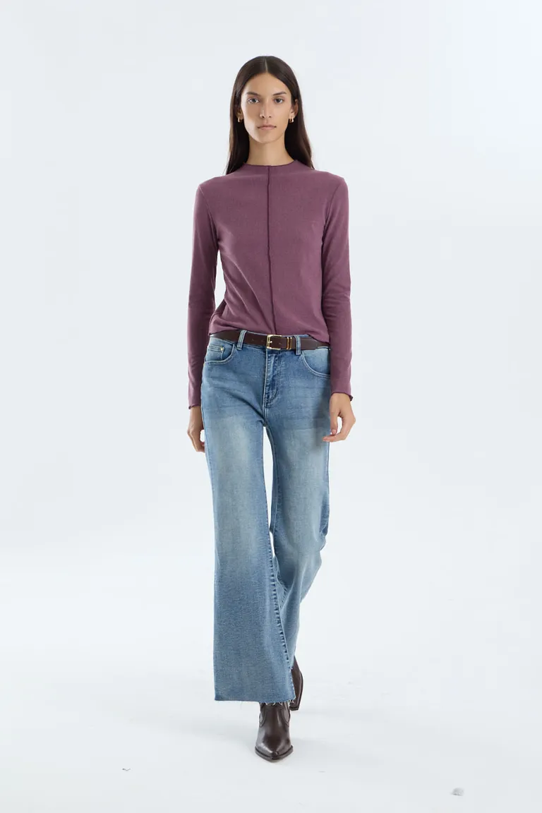 Remera de manga larga con cuello media polera, diseñada con un estilo casual que presenta costuras vistas a lo largo del frente y la espalda. Esta prenda ofrece un ajuste cómodo y versátil, ideal para completar diversos conjuntos diarios. Un básico con detalles sutiles que aportan distinción y un toque de textura al guardarropa femenino.
