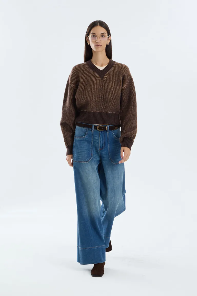 Sweater con escote en V y diseño de largo hasta la cadera. Presenta una textura definida y un efecto visual dado por la combinación de tonos en su tejido, ideal para sumar una prenda básica y con abrigo al guardarropa diario.