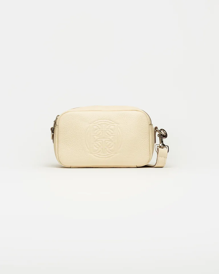 Bandolera de diseño compacto con textura grabada y detalle de logo frontal. Este modelo se presenta con una silueta versátil, ideal para acompañar looks cotidianos con un toque elegante y funcional. Cuenta con un formato práctico que facilita el traslado de elementos esenciales tanto en salidas diarias como nocturnas.