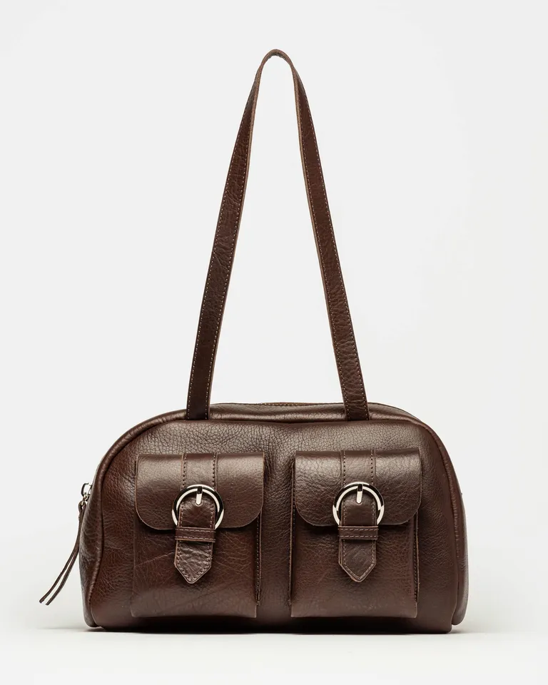 Bolso de mano con diseño vintage y silueta compacta. Cuenta con dos bolsillos frontales con detalle de hebillas que suman funcionalidad y estilo. Un accesorio versátil para completar tus outfits diarios con un toque clásico, ideal para organizar tus pertenencias con comodidad gracias a su capacidad de guardado.
