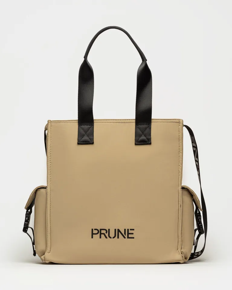 Bolso shopper de diseño funcional con doble manija y correa, ideal para el uso diario. Presenta una estética urbana y deportiva, ofreciendo comodidad para llevar elementos de estudio o trabajo. Su formato vertical y bolsillos laterales brindan practicidad en todo momento.