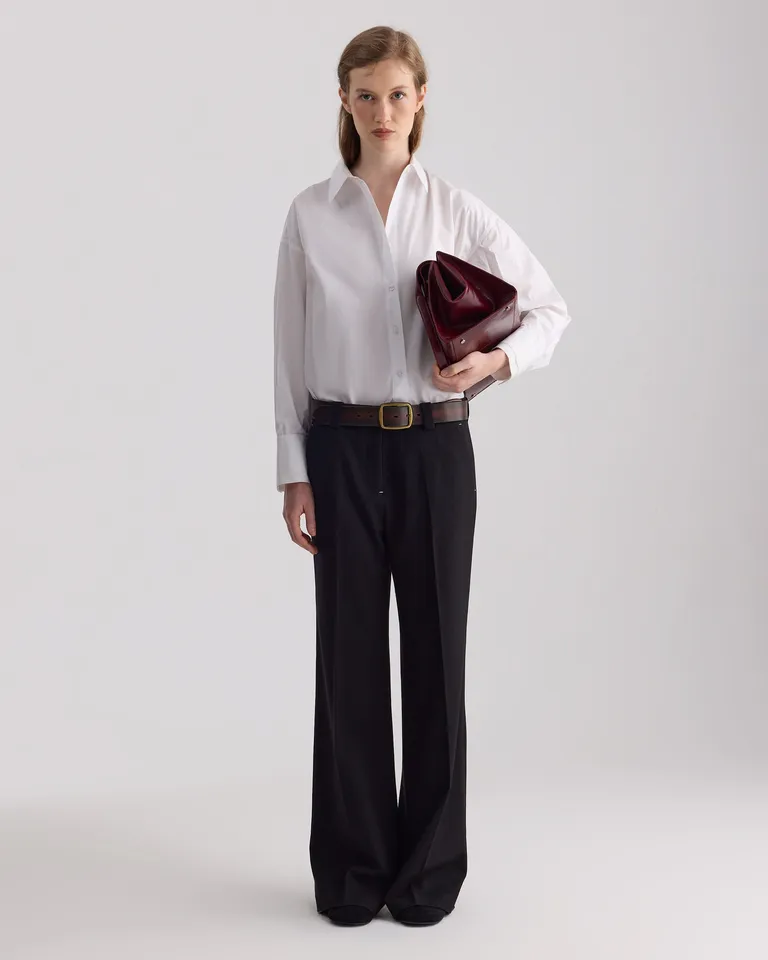 Camisa de calce oversize con cuello clásico, botones al frente y puños anchos con detalle. Una prenda versátil y cómoda, ideal para completar equipos de oficina o outfits casuales y urbanos. Presenta un diseño minimalista y elegante que se adapta fácilmente a diferentes estilos, garantizando una silueta moderna y sofisticada para el día a día.