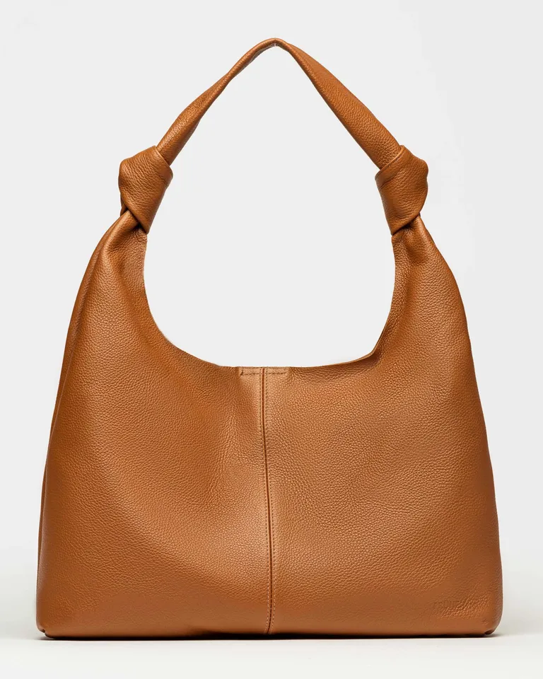 Cartera estilo hobo con diseño orgánico y silueta blanda. Presenta un detalle característico de nudos en las manijas que aporta un estilo distintivo al accesorio. Cuenta con un diseño minimalista y funcional, incorporando un bolsillo interno tipo canguro para una mejor organización de tus pertenencias. Ideal para completar tus looks diarios con un accesorio cómodo y versátil.