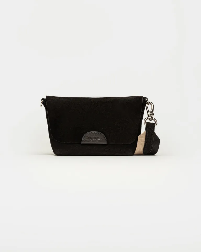 Cartera pequeña de diseño compacto con solapa frontal y detalle de marca grabado. Presenta una correa ancha regulable para llevar al hombro o cruzada, ideal para el uso diario. Un accesorio versátil que combina funcionalidad con una estética casual y moderna, adaptándose fácilmente a diferentes looks.