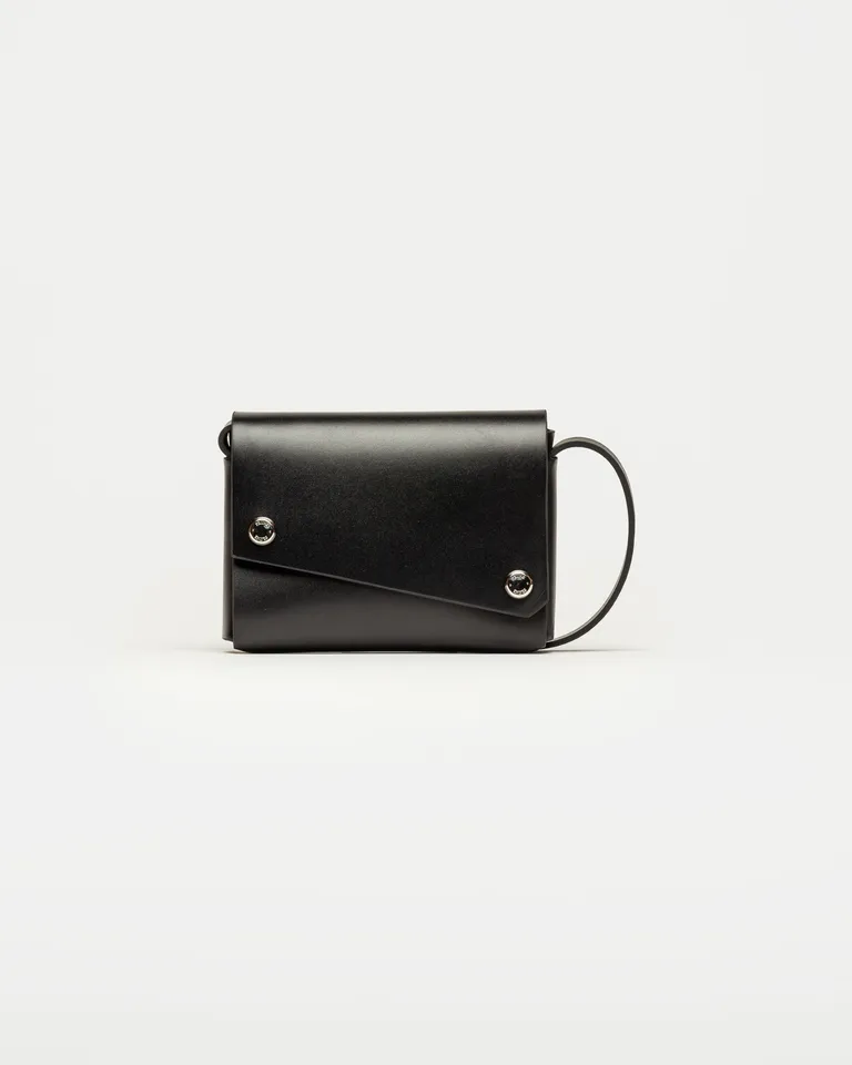 Mini cartera de diseño compacto y estructura rígida con detalle de broches metálicos a la vista. Un accesorio minimalista ideal para organizar tus objetos esenciales diarios con estilo y elegancia. Su formato práctico y sofisticado la convierte en el complemento perfecto para cualquier ocasión.