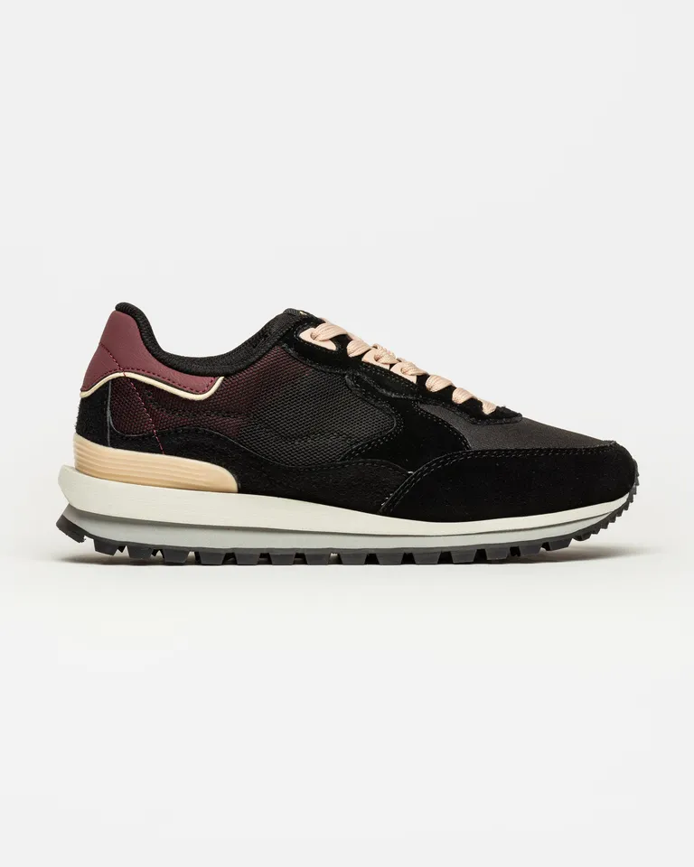 Zapatilla de estilo urbano con base combinada y suela dentada. Su diseño propone un equilibrio ideal entre funcionalidad deportiva y elegancia, ofreciendo comodidad para el uso diario con una estética versátil que se adapta a diversos conjuntos.