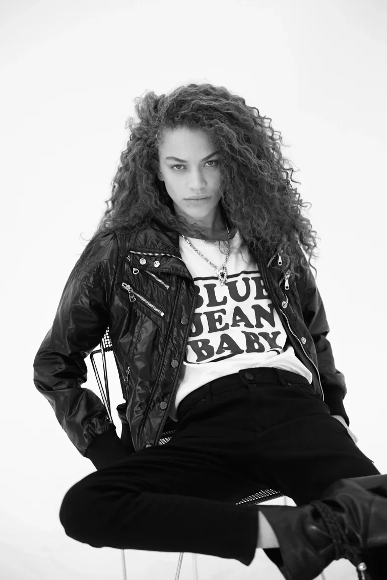 Campera estilo motociclista con cierres metálicos visibles y puños de punto de Rapsodia