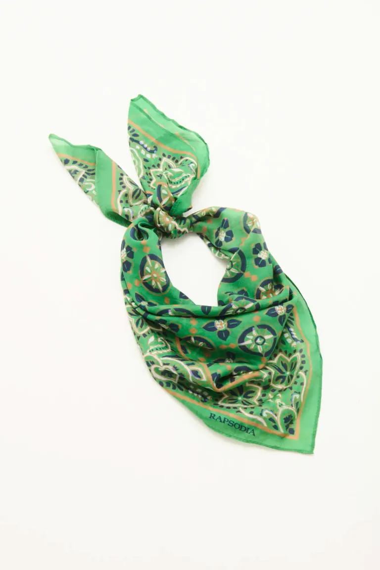Este pañuelo cuadrado de seda con un diseño único es el accesorio perfecto para complementar tus atuendos. Súmalo a tus carteras o bolsos para darles un toque de estilo y elegancia. Versátil y de fácil combinación, este pañuelo es una excelente opción para actualizar tus looks de manera sencilla.