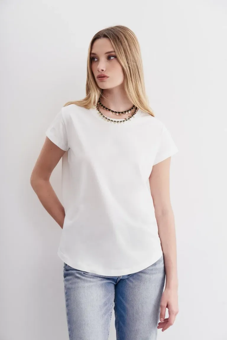 Remera de manga corta con escote redondo y diseño clásico. Su corte presenta una caída fluida que se adapta cómodamente al cuerpo. Ideal para combinar en diversos conjuntos diarios, ofreciendo versatilidad y un estilo atemporal para usar durante todo el año.