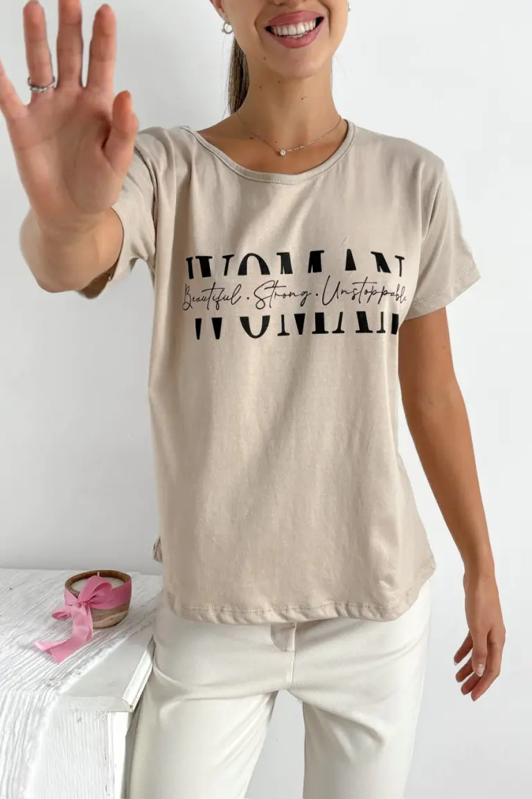 Remera de algodón 100% con diseño estampado en la parte delantera. Escote redondo y longitud a la cadera. Prenda cómoda y versátil para complementar diversos looks casuales y urbanos. Ideal para mujeres que buscan prendas de calidad y estilo.