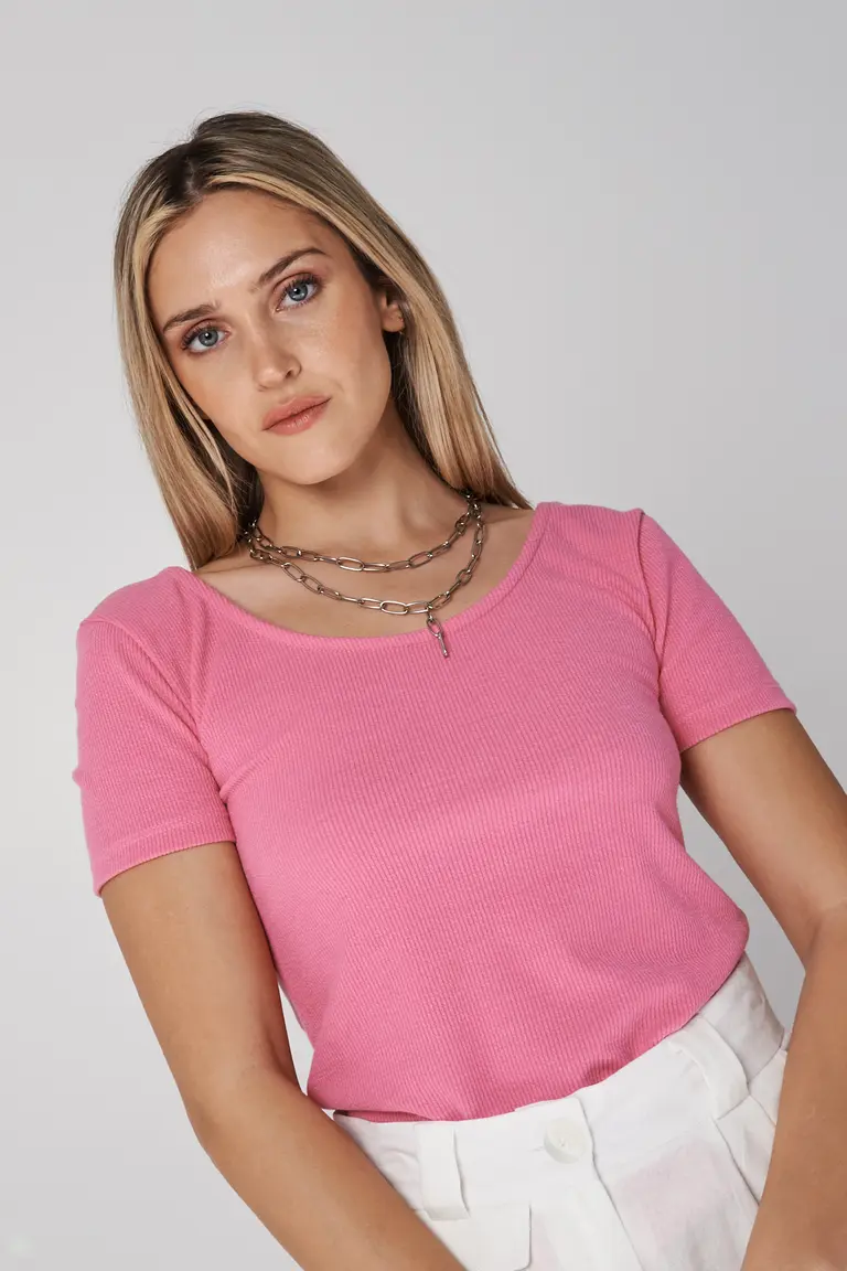 Remera básica y versátil para mujer, ideal para combinar con diferentes looks. Disponible en una amplia gama de tallas para adaptarse a tu figura. Prenda cómoda y de fácil uso para el día a día.