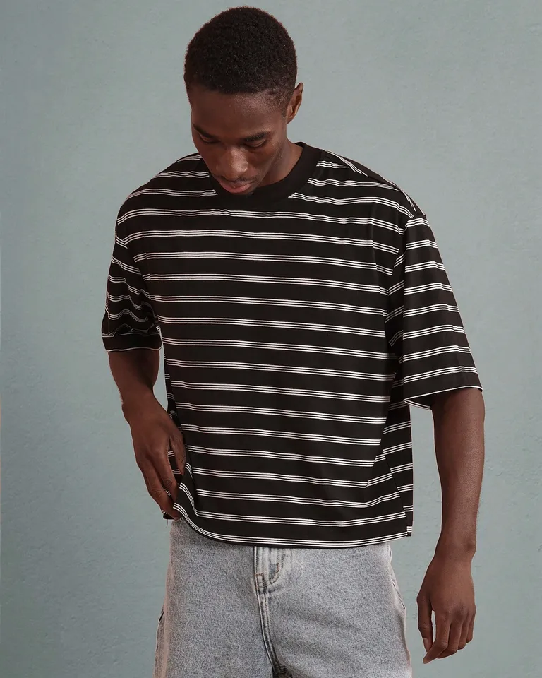 Ropa casual y cómoda para el día a día. Esta camiseta de rayas de corte relajado y cuello redondo es la prenda perfecta para lograr un look fresco y moderno en tus salidas de verano. Combínala con pantalones o bermudas para crear un estilo urbano y desenfadado. Disponible en tallas desde XS hasta XL para que encuentres tu talla ideal.