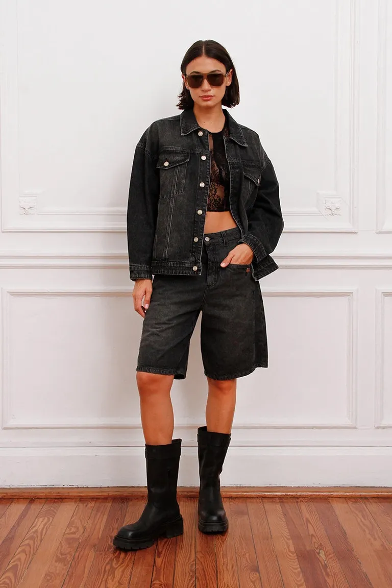 Campera de jean con diseño oversize y largo a la cadera. Presenta cierre con botones metálicos y una silueta ideal para complementar tus looks diarios. Una prenda versátil, cómoda y funcional, perfecta para llevar en diversas ocasiones y combinar fácilmente con el resto de tu guardarropa de temporada.