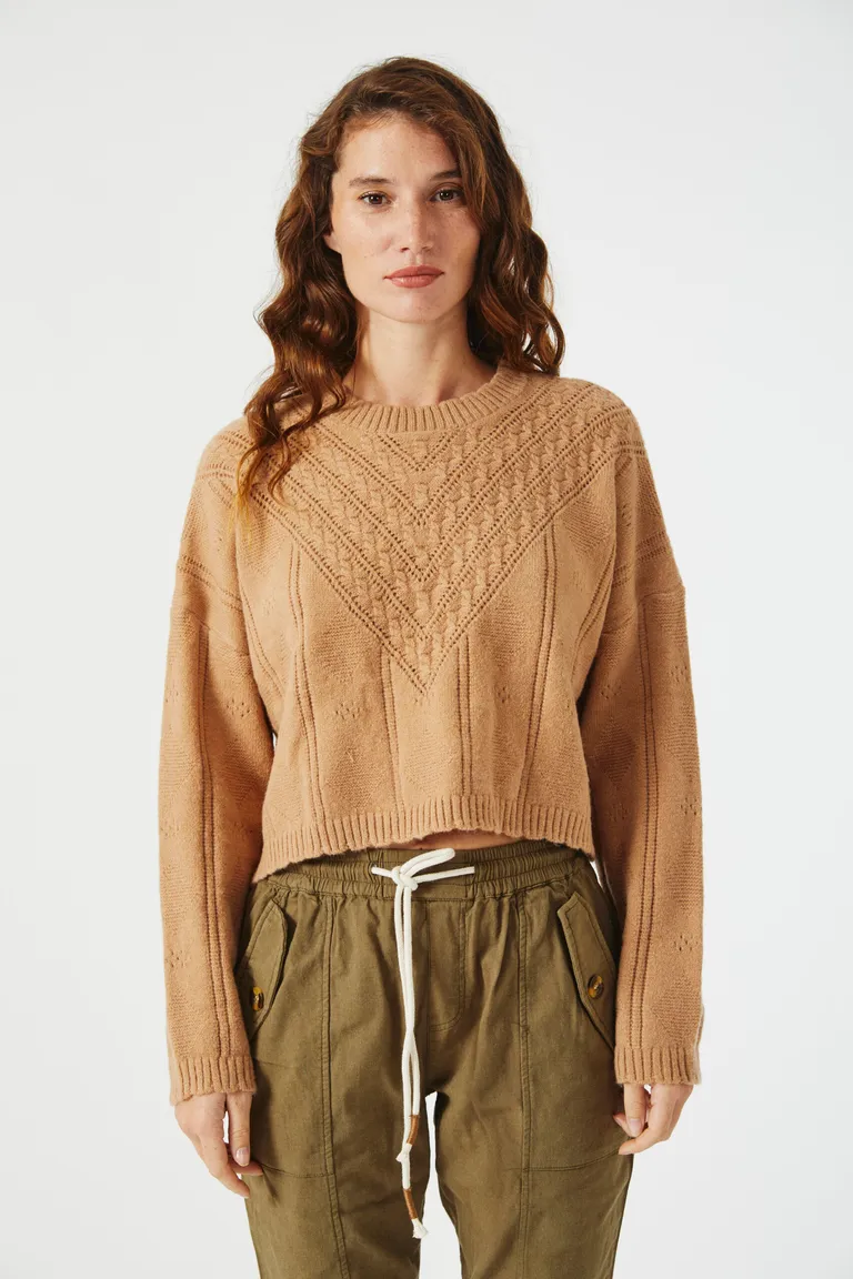 Suéter tejido de punto en una suave textura que brinda calidez y comodidad. Perfecto para lucir un estilo casual y elegante en cualquier ocasión. Ideal para complementar tus looks de temporada con un toque femenino y otoñal.
