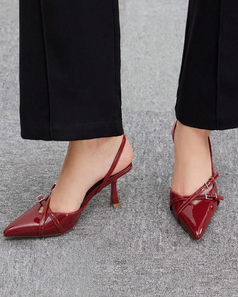 Deslumbra con estilo y elegancia esta temporada con nuestros exclusivos zapatos de tacón alto con punta afilada de color rojo. Diseñados con una correa delgada en la parte trasera y un cierre de hebilla, estos zapatos son perfectos para complementar tus looks más sofisticados en ocasiones especiales como Navidad, Año Nuevo y San Valentín. Eleva tu estilo con nuestra selección de calzado de moda hecho para lucir fabulosa.