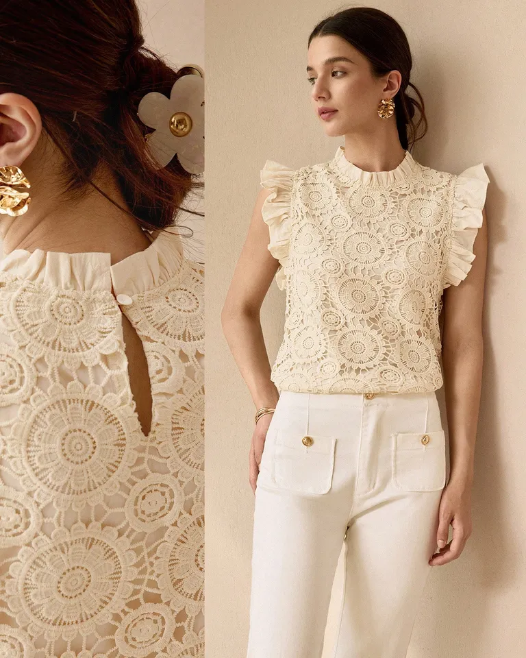 Eleva tu estilo con este elegante top de encaje guipure. Diseño romántico y delicado, perfecto para ocasiones especiales. Combínalo con faldas de tul o pantalones de seda para crear looks sofisticados y femeninos. Consigue un toque de sofisticación a tu guardarropa con esta prenda versátil y versátil.