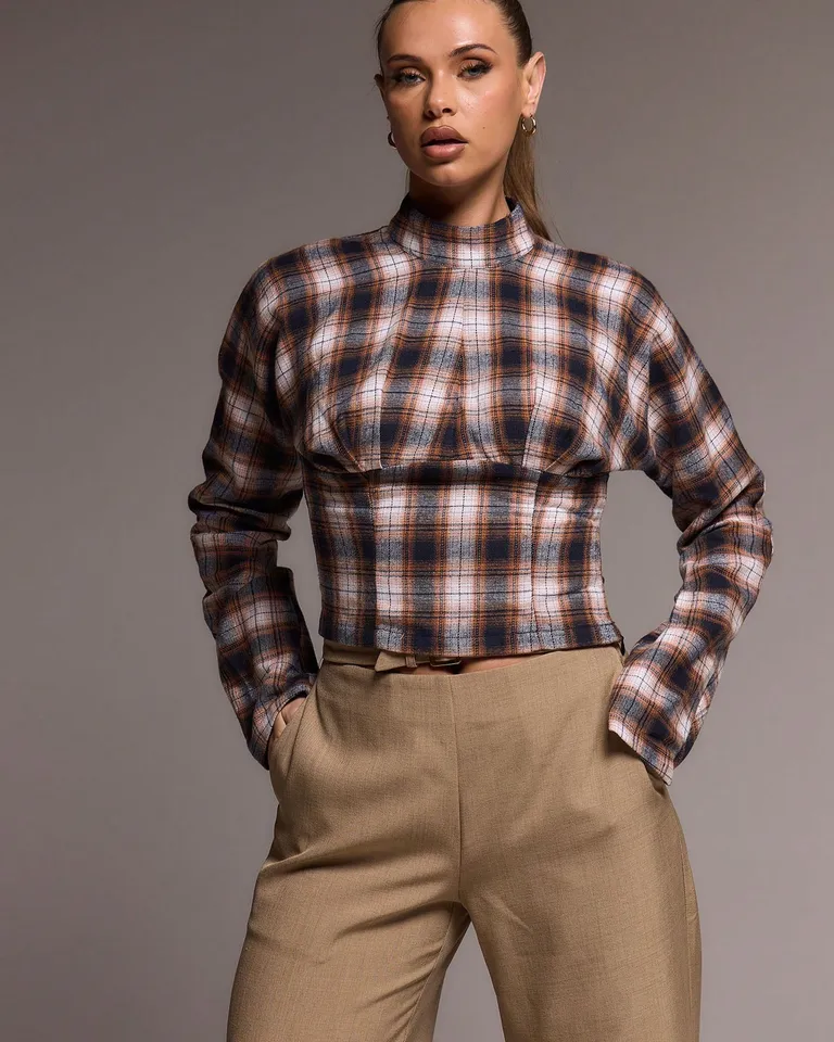 Luce un estilo moderno y elegante con este top holgado de manga larga. Su diseño con cuello alto y cintura ceñida te permitirá crear looks versátiles para tu día a día. Combínalo con jeans, pantalones de cuero o faldas para lograr un look urbano y chic. Disponible en tallas desde XS hasta L para que encuentres tu talla perfecta.